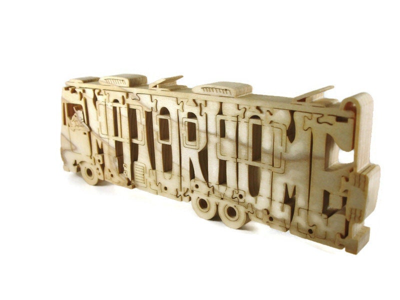 This Motorhome / RV jigsaw / scroll saw puzzle was cut by hand from 3/4 inch hardwood using a scroll saw. This 15 piece puzzle features a RV silhouette with the word Motorhome cut out as the puzzle pieces.