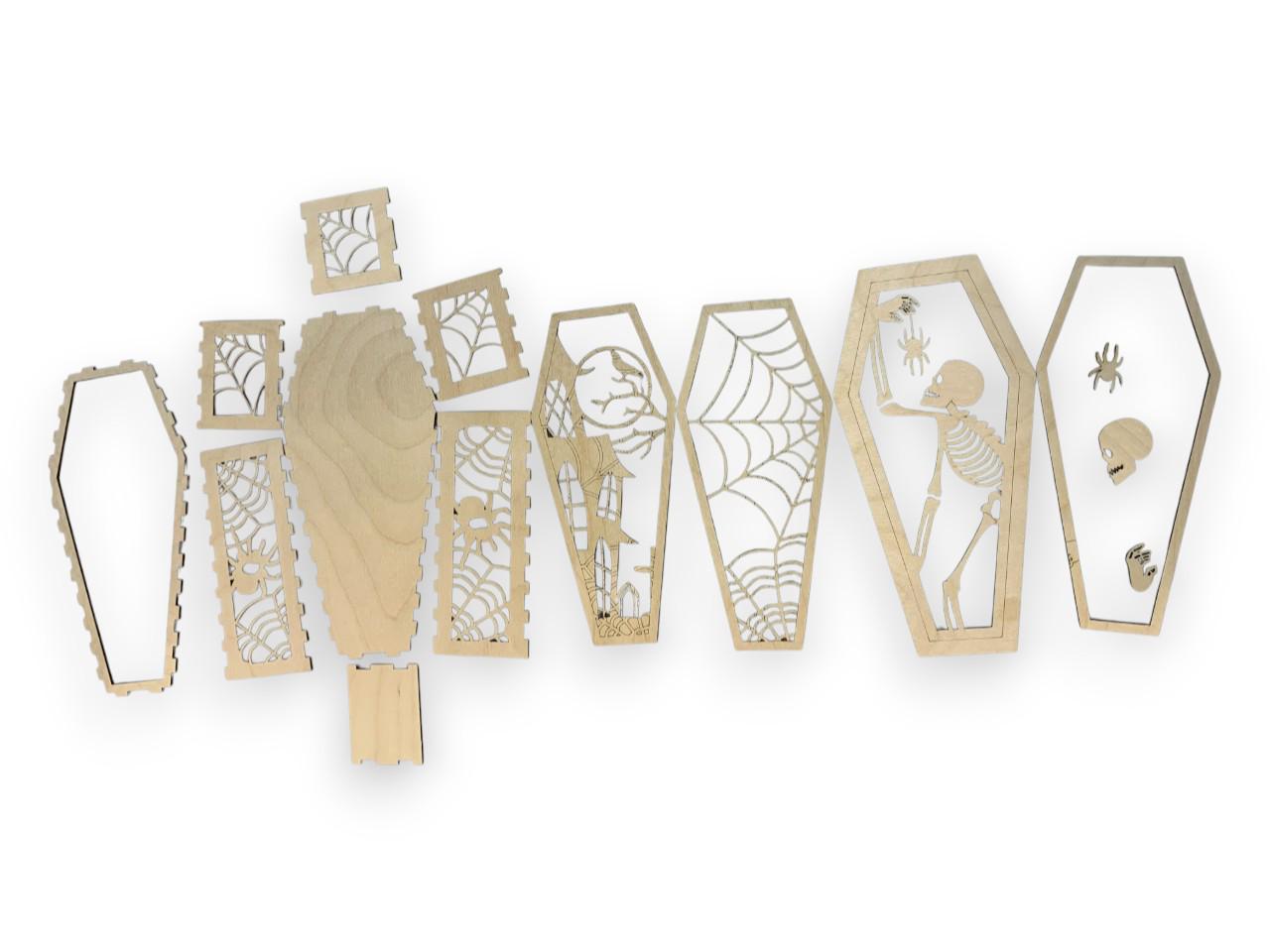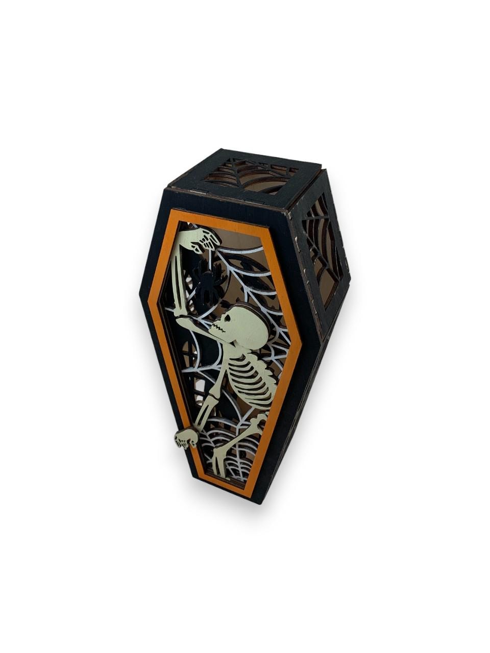 Fun, spooky, lanterns will light up your homes décor, and children's faces. The lanterns are made with Halloween themed designs and laser cut into the plywood. The assembly of the lanterns is done with water resistant Tite-Bond 3 glue to make them last. They come with one LED candle that flickers. This makes them look like they have a real candle in them but are completely safe from open flames.